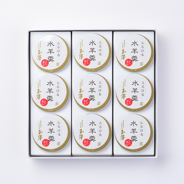 北海道産の厳選小豆をじっくり煮詰めた「こしあん」を使用して仕上げた水羊羹です。 その繊細な口あたりは、優しい甘みとまさにお口の中でとろけるようななめらかさを演出いたします。 九重本舗玉澤ならではの素材と製法を吟味した「とろける水羊羹」をぜひご賞味ください。
