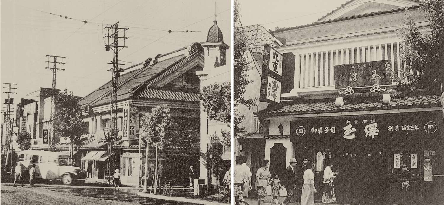 大正時代の初めには市内・名掛丁(なかけちょう)角に店舗を設け、新たな"玉澤横丁"として大正~昭和にかけて世人より特別に親しまれて参りましたが、戦後、都市計画のため仙台駅前・南町通りに店舗移転し、昭和二十五年、株式会社九重本舗 玉澤として法人に改め、現在は仙台市太白区郡山に本社・工場を設けるに至っております。